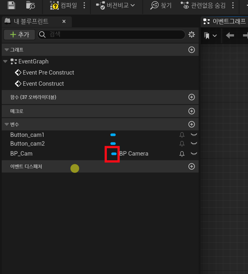 변수 타입이 아래 그림과 같이 변경되면 성공입니다. 그리고 그래프에서 SET BP_Cam은 삭제합니다.