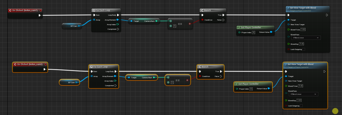 지금까지 만든 블루프린트 노드들을 복사해 Button_cam2에도 연결합니다.