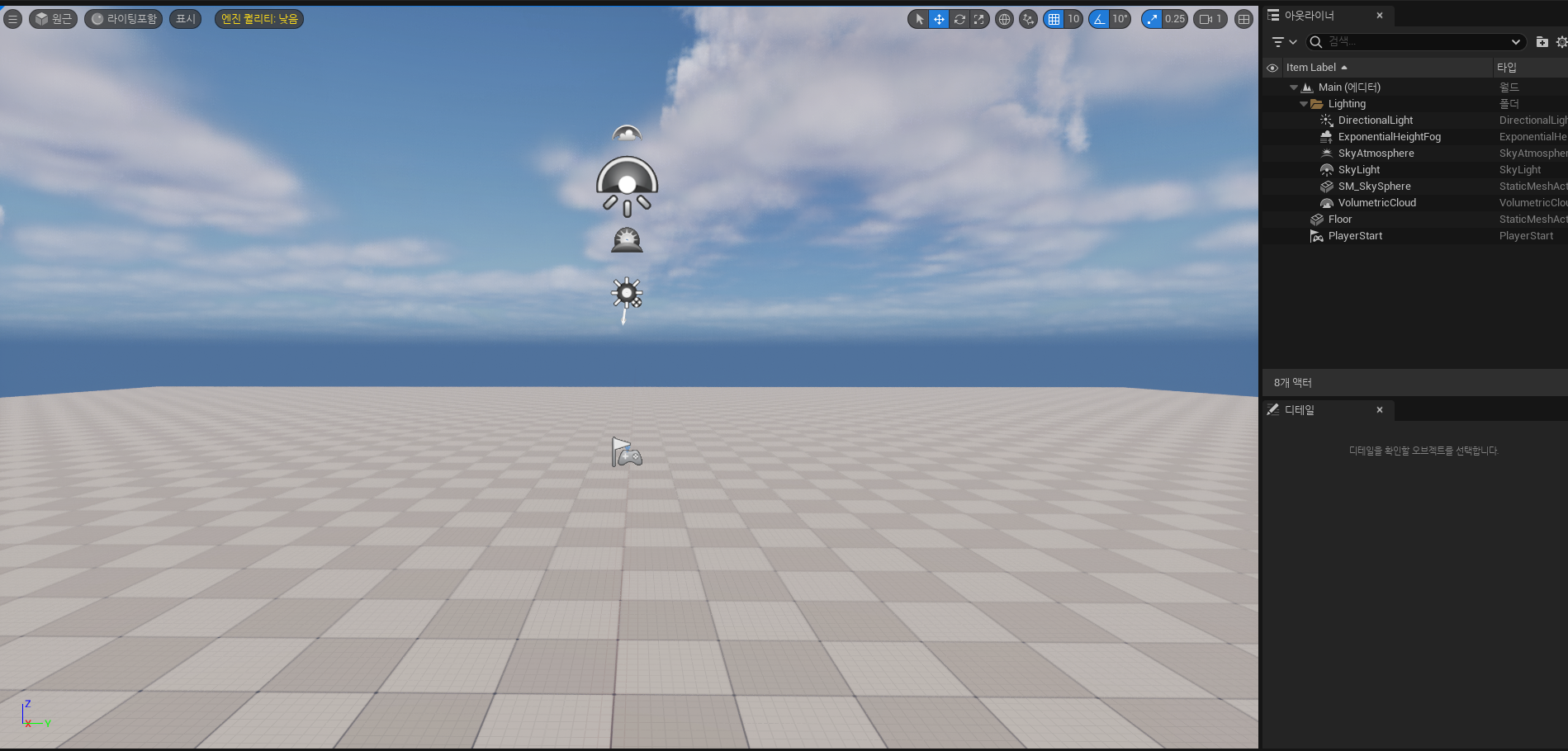 한번 프로젝트를 종료 후 다시 프로젝트를 실행해 보시면 내가 만든 맵이 켜지는 것을 확인하실 수 있습니다.