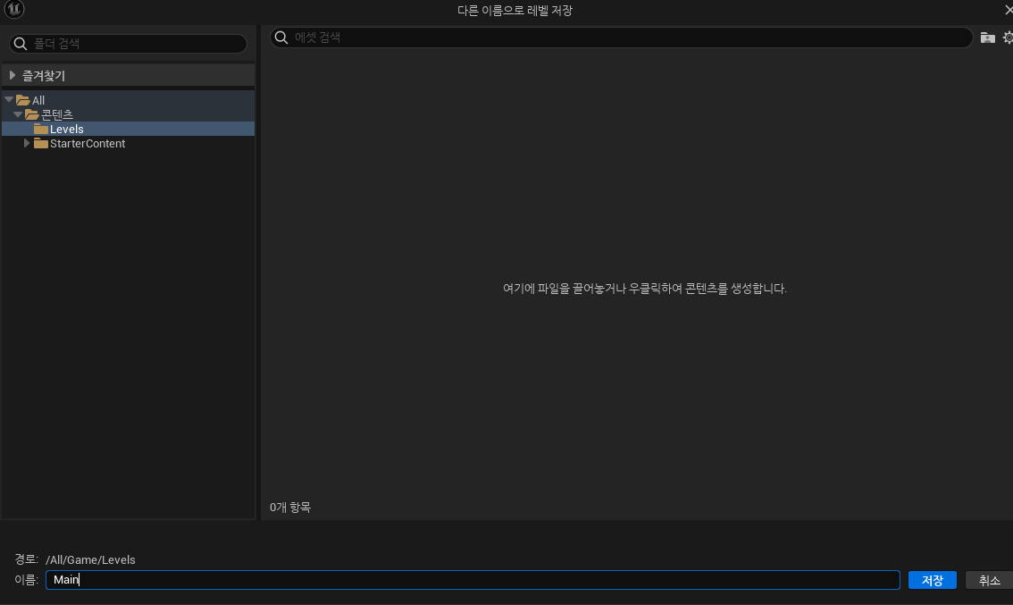 그리고 Levels 폴더 안에 새로 만든 맵(레벨)을 저장해 보겠습니다.