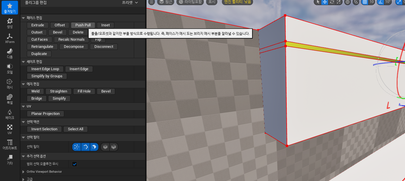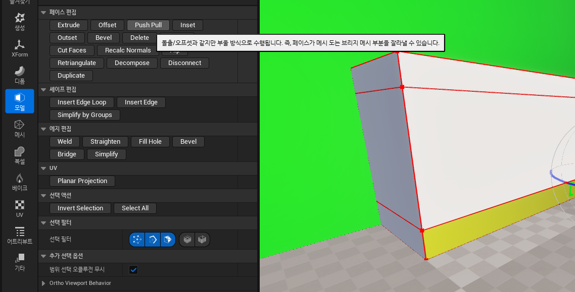 그 다음 왼쪽 위에서 'Push Pull' 버튼을 찾아 클릭합니다.